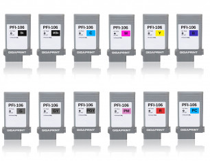 CANON PFI-106 Černá + Barevné Pigment Ink - kompatibilní multipack garantovaně spolupracuje s následujícími tiskárnami: