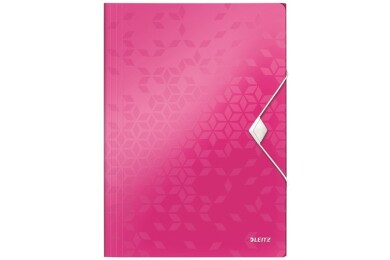 Mapa odkládací A4 Leitz WOW 253, tříklopá, celoplastová, s gumičkou, růžová
