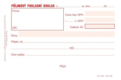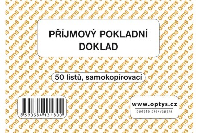 Tiskopis Příjmový pokladní doklad jednoduché účetnictví Optys, A6, samopropisovací, 50 listů